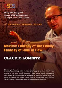 B. N. Ganguli Memorial Lectures are instituted in memory of the distinguished economist Professor B. N. Ganguli, former Chair, CSDS Board of Governors. Earlier speakers in the series include Professors Charles Taylor, Rodolfo Stavenhagen, Raimundo Panikkar, Bhikhu Parekh, Ernest Gellner, Ali Mazrui, Roberto Unger, Michael Walzer, John Keane, Amit Bhaduri, Giorgio Agamben, Bina Agarwal, José Casanova, Partha Chatterjee, Boaventura de Sousa Santos and Dipesh Chakrabarty.