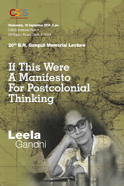 B. N. Ganguli Memorial Lectures are instituted in memory of the distinguished economist Professor B. N. Ganguli, former Chair, CSDS Board of Governors. Earlier speakers in the series include Professors Charles Taylor, Rodolfo Stavenhagen, Raimundo Panikkar, Bhikhu Parekh, Ernest Gellner, Ali Mazrui, Roberto Unger, Michael Walzer, John Keane, Amit Bhaduri, Giorgio Agamben, Bina Agarwal, José Casanova, Partha Chatterjee, Boaventura de Sousa Santos, Dipesh Chakrabarty, Claudio Lomnitz, Jomo Kwame Sundaram and Sari Nusseibeh.